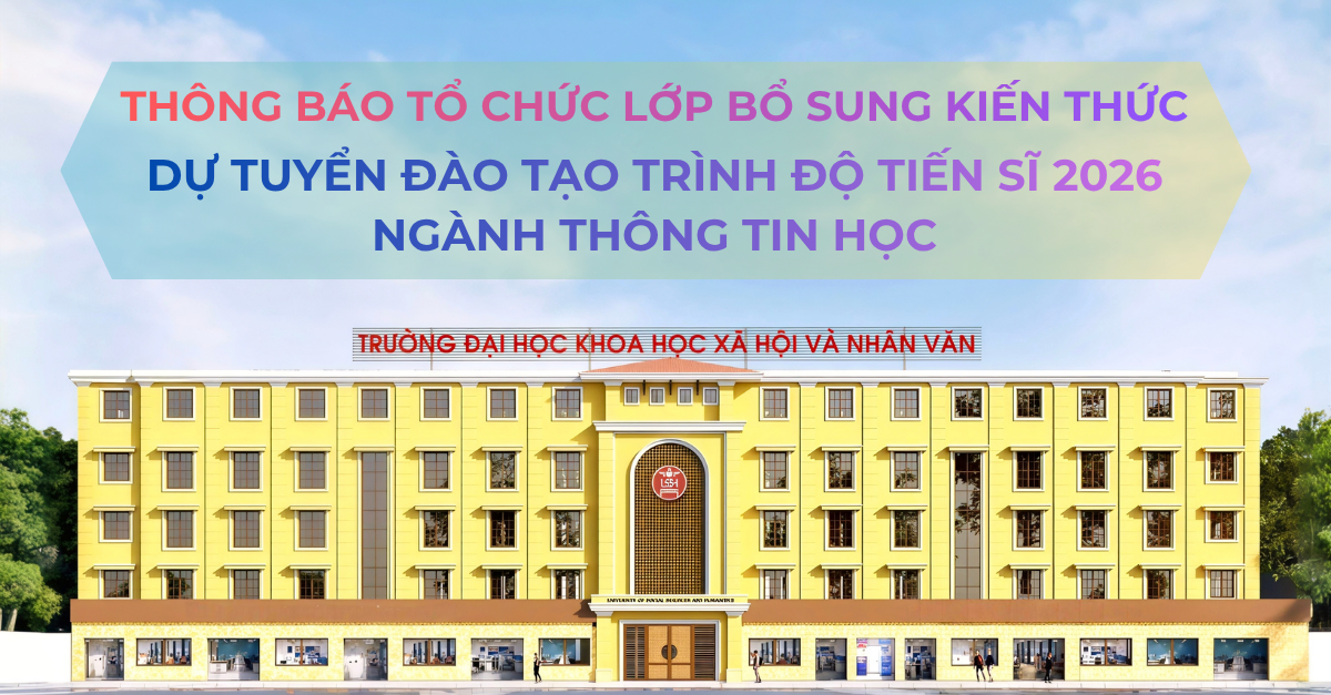 Trường Đại học Khoa học Xã hội và Nhân văn, Đại học Quốc gia Hà Nội thông báo tuyển sinh bổ sung tiến sĩ đợt 1 năm 2026 theo các nội dung sau:...